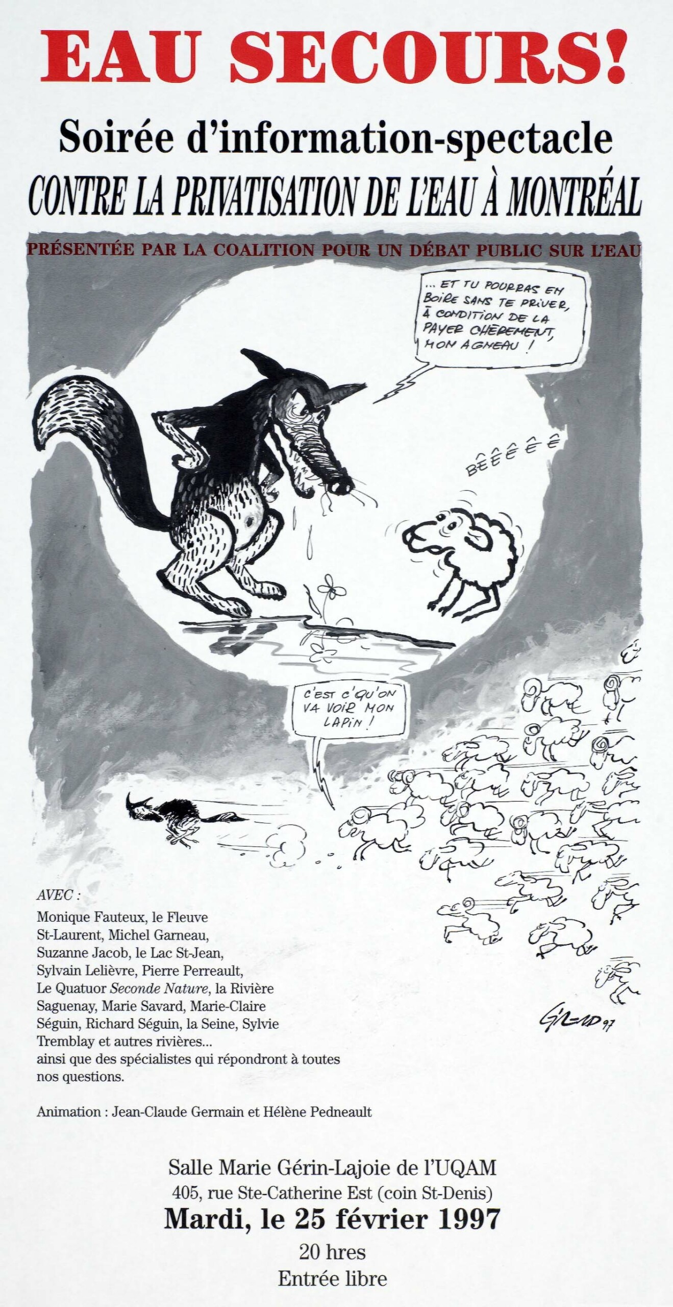 En 1997, un groupe de personnes inquiètes face à la menace de la privatisation des services d'eau de Montréal s'est rassemblé pour partager leurs craintes et pour imaginer un mouvement capable de stopper cette atteinte au droit à l'eau potable.