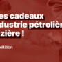 Alors que les entreprises pétrolières et gazières multiplient les pressions auprès du gouvernement pour recevoir plusieurs dizaines de millions, voire des centaines de millions de dollars de fonds publics à la suite de l’adoption de la loi anti-forages, les groupes à l’origine de la pétition tiennent à fermer complètement la porte à cette éventualité avec le slogan «Fini les cadeaux !». Pour eux, il est impensable de donner encore des fonds publics en cadeau à une industrie qui nous pousse au bord du gouffre climatique. De plus, tel que l’a démontré le Centre québécois du droit de l’environnement (CQDE) dans un rapport récent, le gouvernement peut très bien mettre fin à l’exploitation pétrolière et gazière sans verser d’indemnités aux entreprises concernées.
