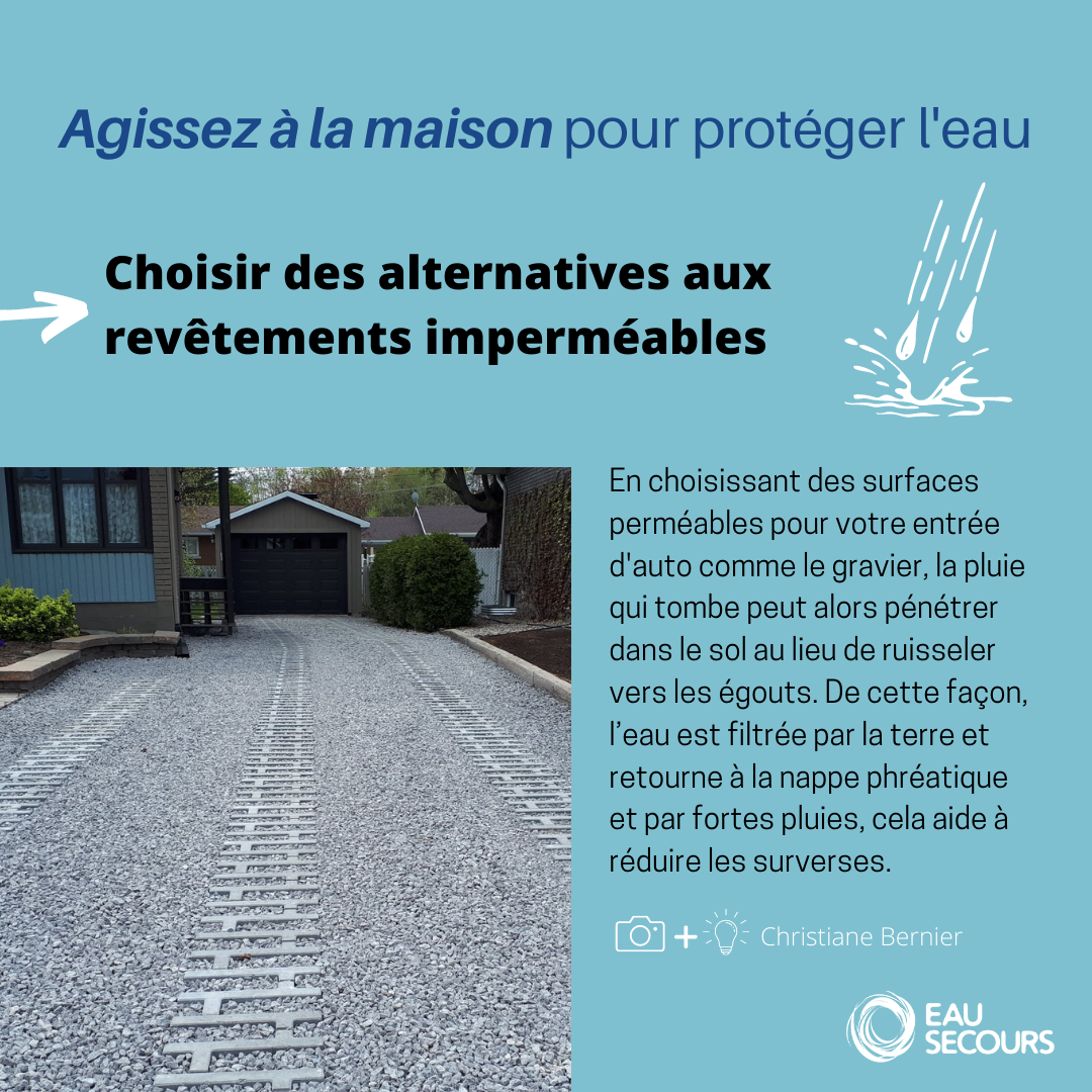 Nous sommes d’accord avec vous: pour qu’il y ait un réel changement, nos différents paliers de gouvernements doivent agir sur la règlementation pour protéger l’eau. Cependant, nous avons toutes et tous un impact sur l’eau dans nos activités quotidiennes. En agissant pour l’eau à la maison, on participe activement à sa protection pour les générations futures.