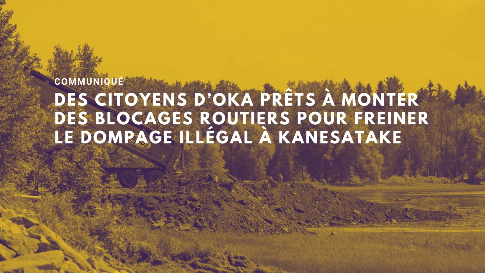 Les militant.es de Kanesatake et leurs allié.es expriment leur frustration suite à la publication d’une enquête du Rover démontrant que des douzaines de camions déposent quotidiennement des tonnes de sols contaminés directement sur les berges du Lac des Deux Montagnes.