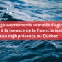 L’organisme et ses partenaires dénoncent cette menace de financiarisation de la ressource en eau québécoise et l’inaction des gouvernements sur le dossier depuis plusieurs années. Une pétition à d’ailleurs été lancée pour sommer le gouvernement fédéral d’agir dans le dossier. Cependant, la problématique est devenue bien plus flagrante dans les derniers jours alors que le représentant d’une entreprise détenant des permis de prélèvements sur plus de 30% de l’eau souterraine au Québec a vanté la valeur de ses permis en entrevue à QUB radio et a affirmé «s’asseoir dessus» en attendant que la valeur augmente. Ceci est un exemple évident de spéculation sur l’eau et nos gouvernements doivent en prendre compte et agir en conséquence. Un laisser-aller face à cette financiarisation de l’eau mènera inévitablement à une atteinte au droit humain à l’eau au Québec.