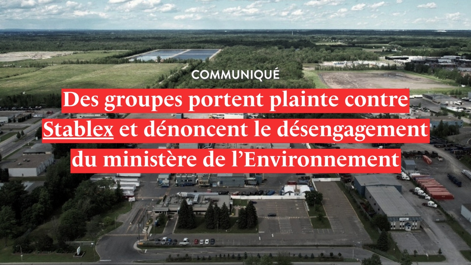 Montréal, le mercredi 22 octobre 2025 | Une coalition de groupes environnementaux, en partenariat avec la Coalition des citoyens de Blainville contre la cellule #6 de Stablex, a déposé aujourd’hui une plainte officielle au ministère de l’Environnement en lien avec les activités de l’entreprise américaine Stablex. La plainte fait suite notamment au déversement d’un liquide contaminé d’un camion quittant le site de l’entreprise Stablex à Blainville le 21 août 2025 ainsi qu’aux révélations de l’émission Enquête de Radio-Canada diffusée le 9 octobre 2025 citant des cas de rejets d’air pollué. Tous déplorent que le Ministère soit absent de la surveillance environnementale à Blainville et que la société civile se retrouve à devoir assurer cette tâche à sa place afin d’assurer la sécurité et le bien-être de la population ainsi que la protection de l’environnement.