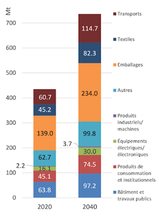 Projection de la production de plastique en 2040
