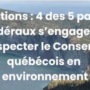 Élections : 4 des 5 partis fédéraux s’engagent à respecter le Consensus québécois en environnement