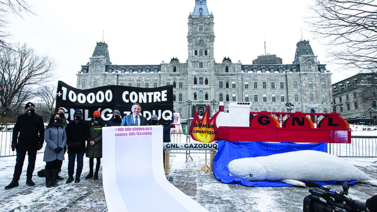 Des groupes citoyens et des organismes environnementaux ont présenté aujourd’hui aux élu.es une pétition regroupant plus de 110 000 signatures contre GNL/Gazoduq à l’Assemblée nationale. Selon les groupes, la pétition déposée est une preuve de plus que le projet ne bénéficie d’aucune acceptabilité sociale.