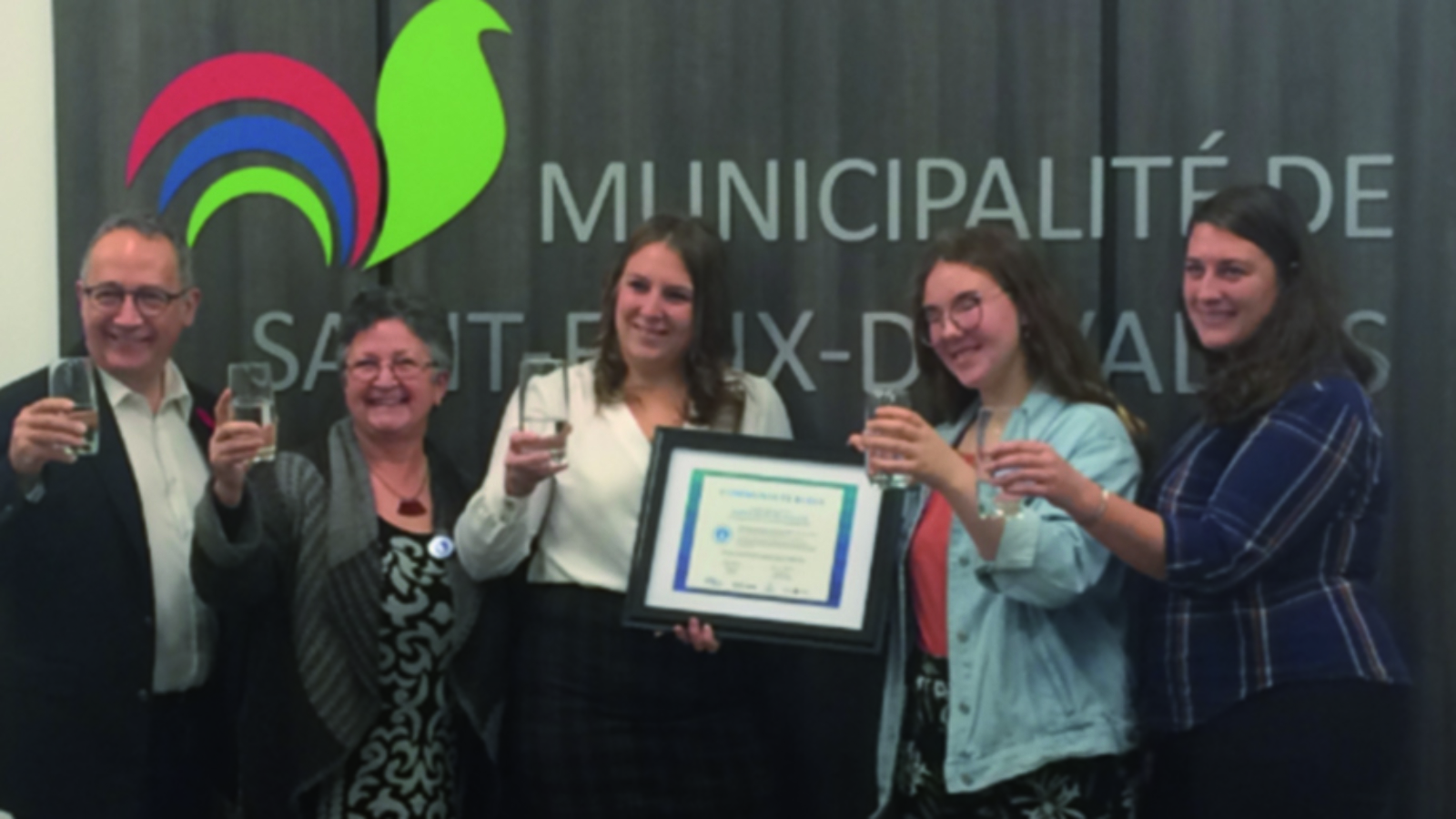 La remise de la certification a été réalisée par Madame Alice-Anne Simard, directrice générale d’Eau Secours, en présence de la mairesse de Saint-Félix-de-Valois, Madame Audrey Boisjoly, de Monsieur Yves Perron, député fédéral de Berthier-Maskinongé, et de Madame Béatrice Garreau, élève de l’école de l’Érablière et participante au programme d’ouverture sur le monde (POM).