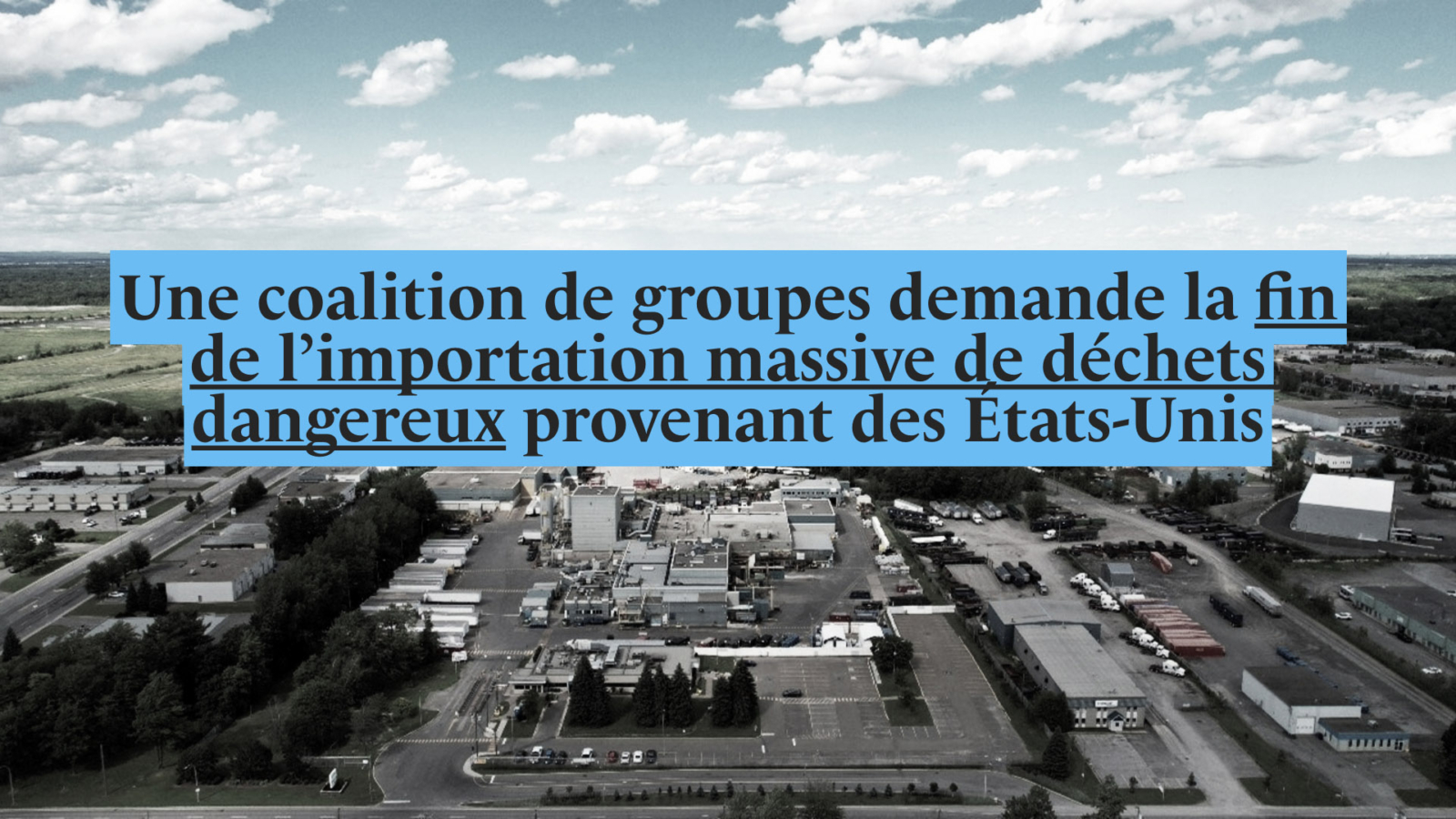 Montréal, le 25 février 2025 – Une coalition de groupes environnementaux, qui suit de près la situation de la gestion des déchets dangereux au Québec depuis plusieurs années, est choquée par les informations rendues publiques aujourd’hui dans un article du Journal de Montréal. Les groupes déplorent la complaisance du gouvernement du Québec face aux entreprises américaines et réclament des actions concrètes de sa part en plus d’une prise de position forte du gouvernement du Canada dans le dossier.